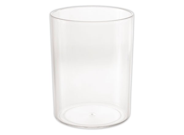 Pot à crayons incolore en polystyrène recyclé. Dim. : Ø 8 x H 10,5 cm.