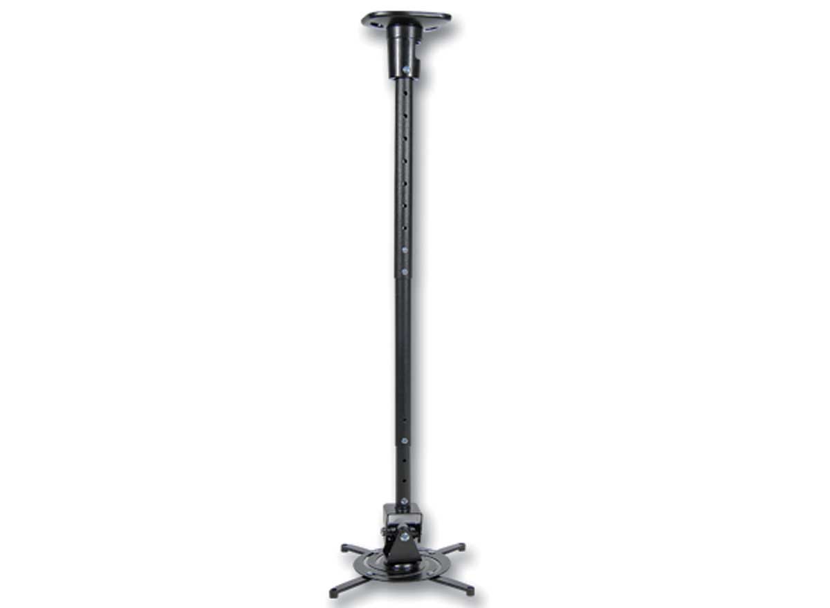 - Support universel avec bras pour fixer le vidéoprojecteur au plafond. - Hauteur : de 74 à 104 cm. - Platine à fixer sur le projecteur Ø 10 cm. - Pivote horizontalement à 360° et verticalement à 180°. - Poids maximum supporté : 10 kg. - Vis de fixation fournies.