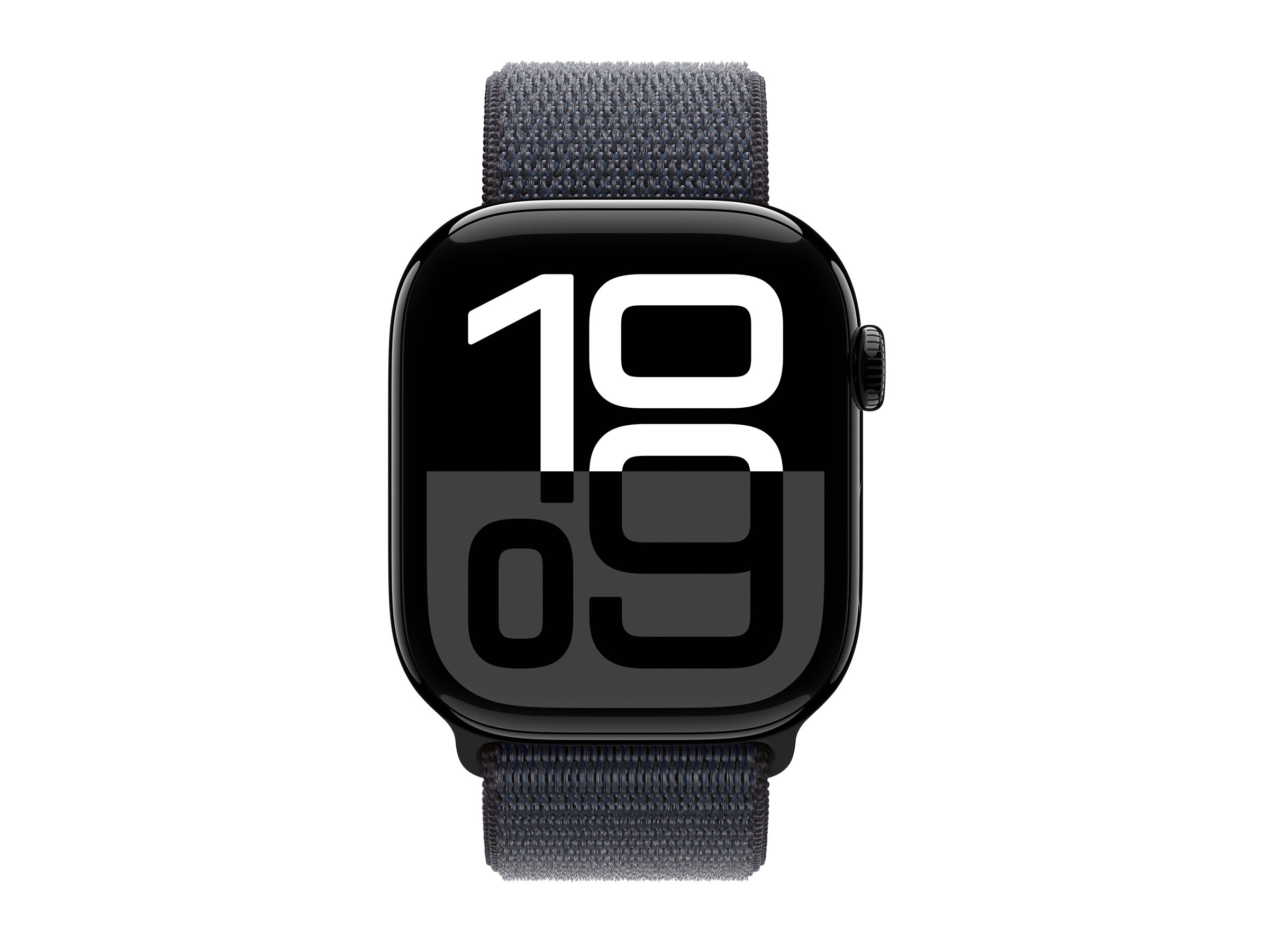 Apple Watch Series 10 (GPS) - 46 mm - aluminium noir jais - montre intelligente avec boucle sport - deux couches de matières textiles tissées - encre - taille du poignet : 130-200 mm - 64 Go - Wi-Fi 4, UWB, Bluetooth - 36.4 g