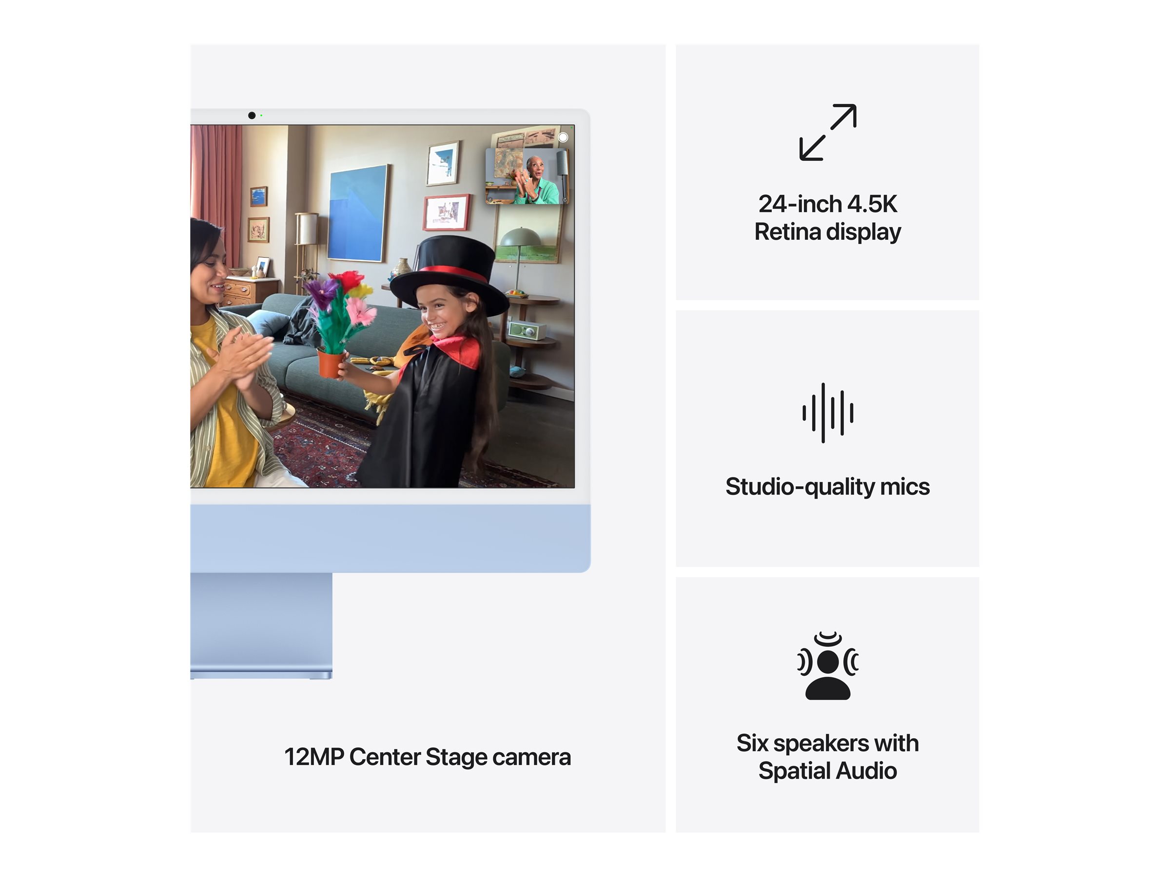 Apple iMac with 4.5K Retina display - Tout-en-un M4 - RAM 16 Go - SSD 256 Go - Apple M4 10-core - Gigabit Ethernet, IEEE 802.11ax (Wi-Fi 6E), Bluetooth 5.3 - macOS Sequoia 15.0 - moniteur : LED 24" 4480 x 2520 (4.5K) - clavier : Français - bleu