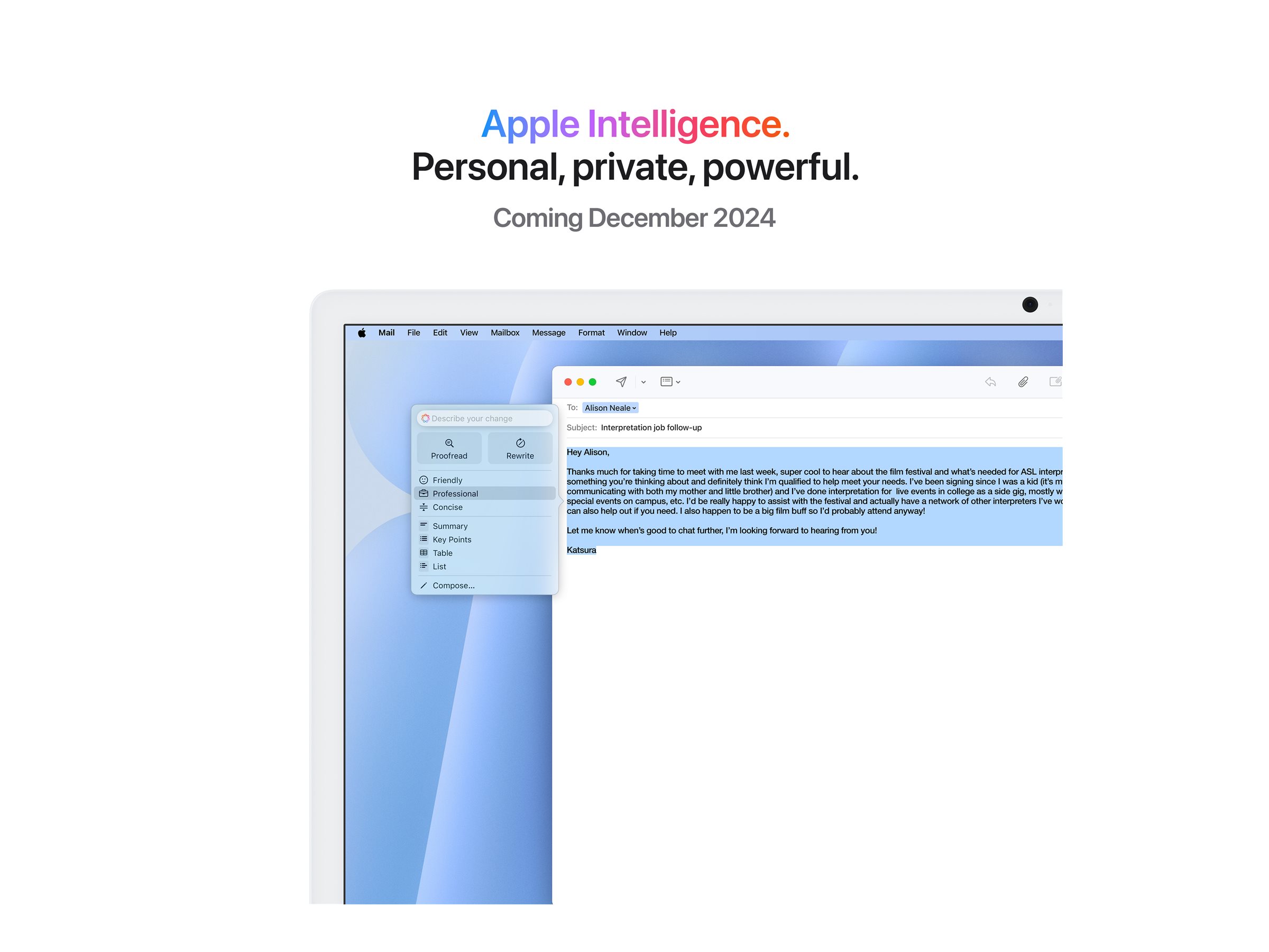 - iMac. Bonjour, Apple Intelligence