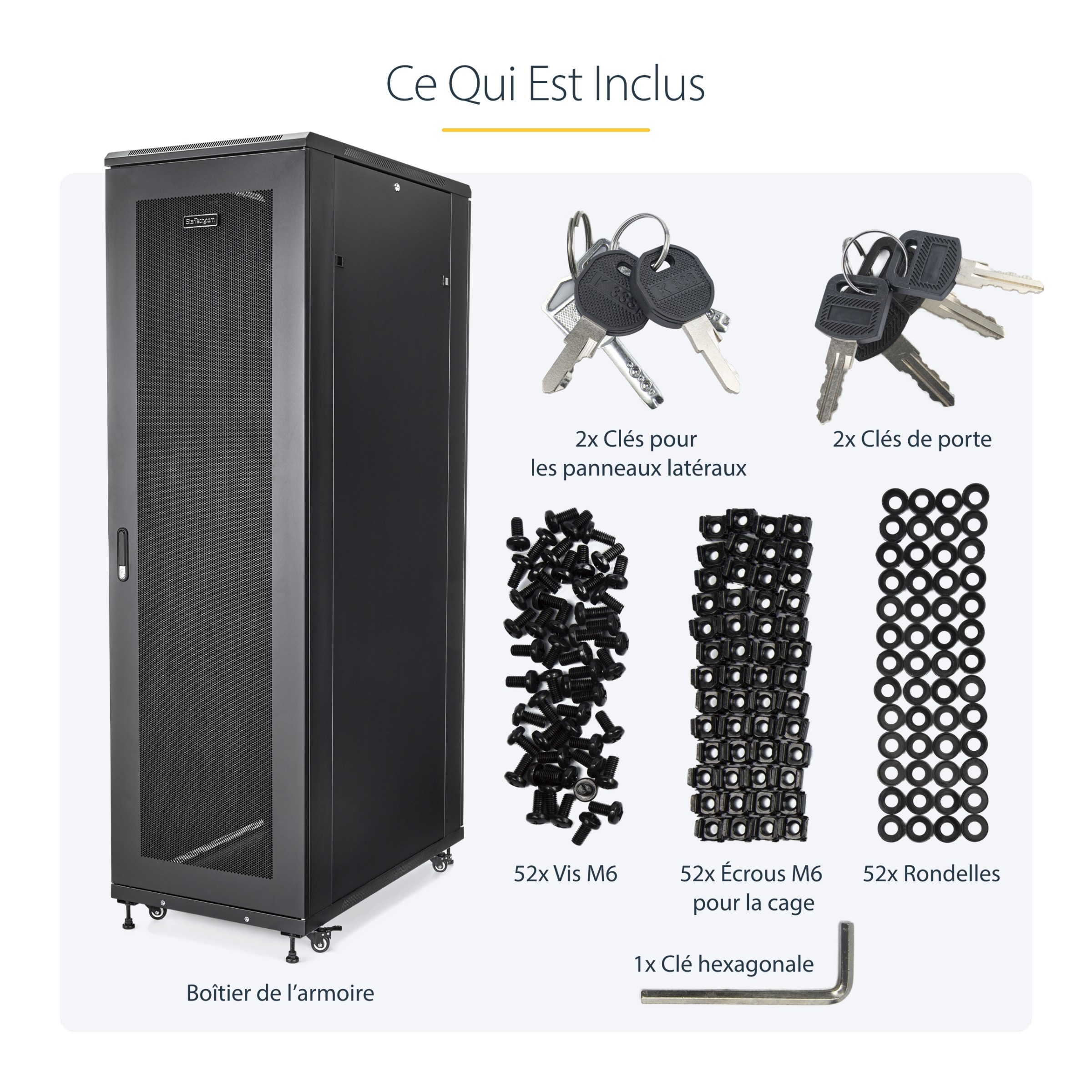 - SÉCURITÉ ET VENTILATION : L'armoire rack 42U est équipée de portes grillagées verrouillables et de panneaux latéraux amovibles avec serrures à déclenchement rapide qui sécurisent votre équipement tout en augmentant la circulation de l'air