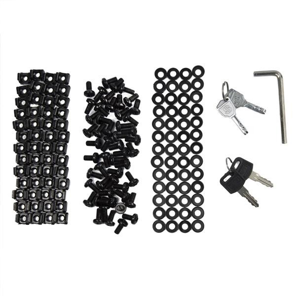 - ENTIÈREMENT ASSEMBLÉ : Le boîtier de l'armoire réseau est livré entièrement assemblé; Il comprend 50 vis M6/50 écrous M6/50 rondelles/1 clé hexagonale/2 clés pour les panneaux latéraux/2 clés pour les portes; Conforme à la norme EIA/ECA-310-E