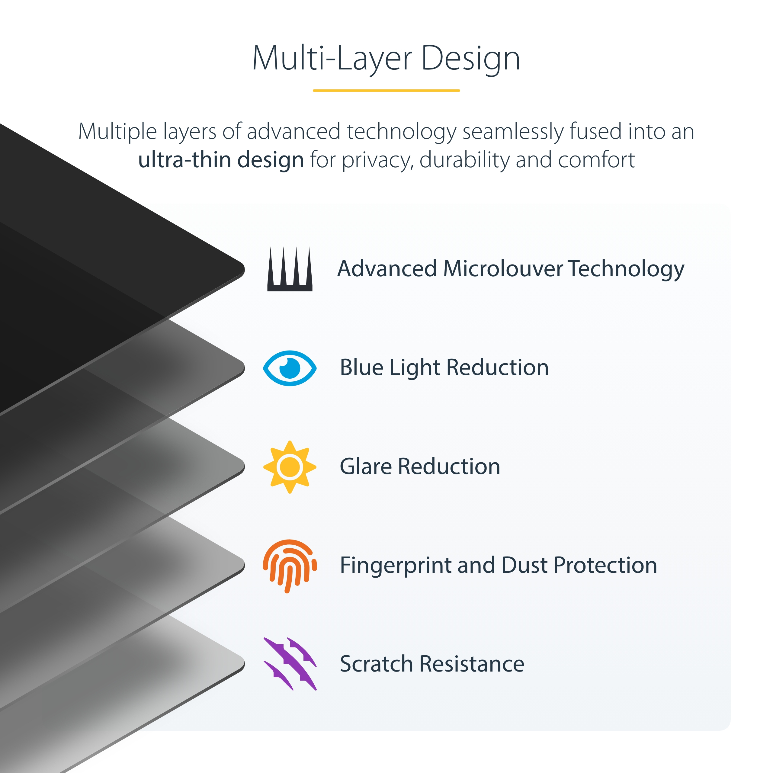 - PROTÉGEZ LES DONNÉES VISUELLES SENSIBLES : Filtre doté de la technologie Micro-louver qui obscurcit la vue en dehors d'un angle de vision de 60 degrés; Gardez les données privées et empêchez l'écoute visuelle dans les espaces publics ou en voyage