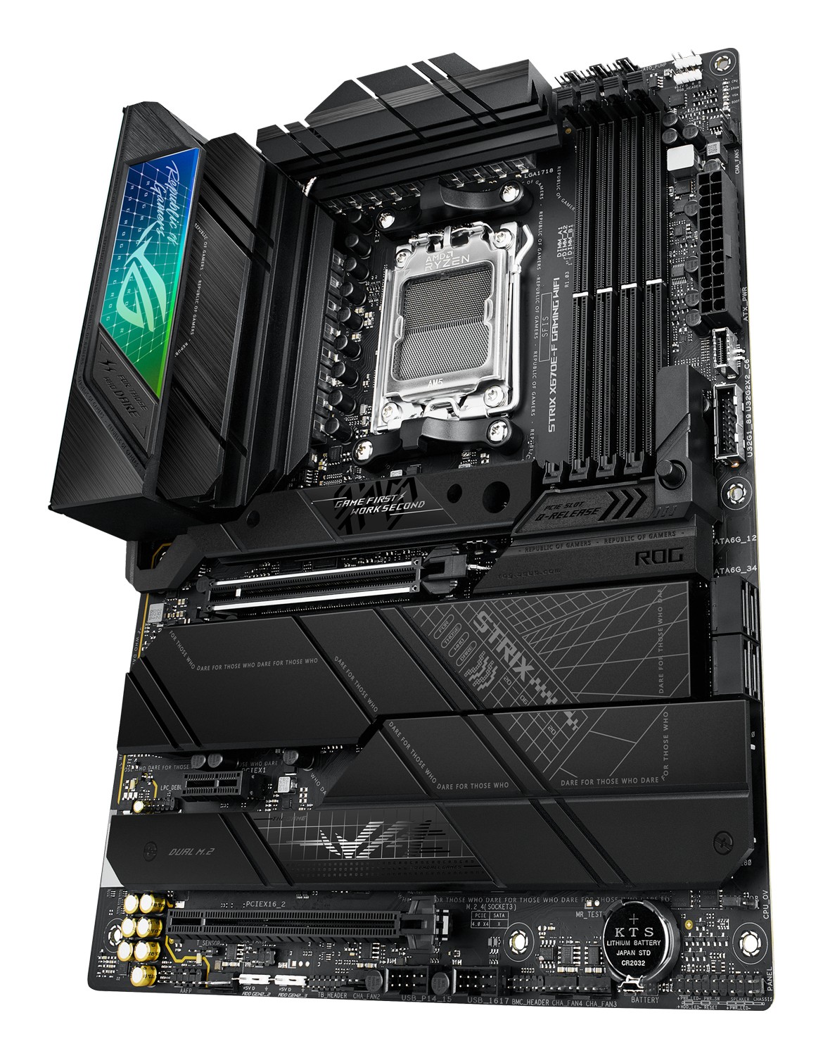 ASUS ROG Strix X670E-F Gaming WiFi - Carte-mère - ATX - Socket AM5 - AMD X670E Chipset - USB-C 3.2 Gen 2x2, USB 3.2 Gen 1, USB-C 3.2 Gen2, USB 3.2 Gen 2 - 2.5 Gigabit LAN, Wi-Fi 6, Bluetooth - carte graphique embarquée (unité centrale requise) - audio HD
