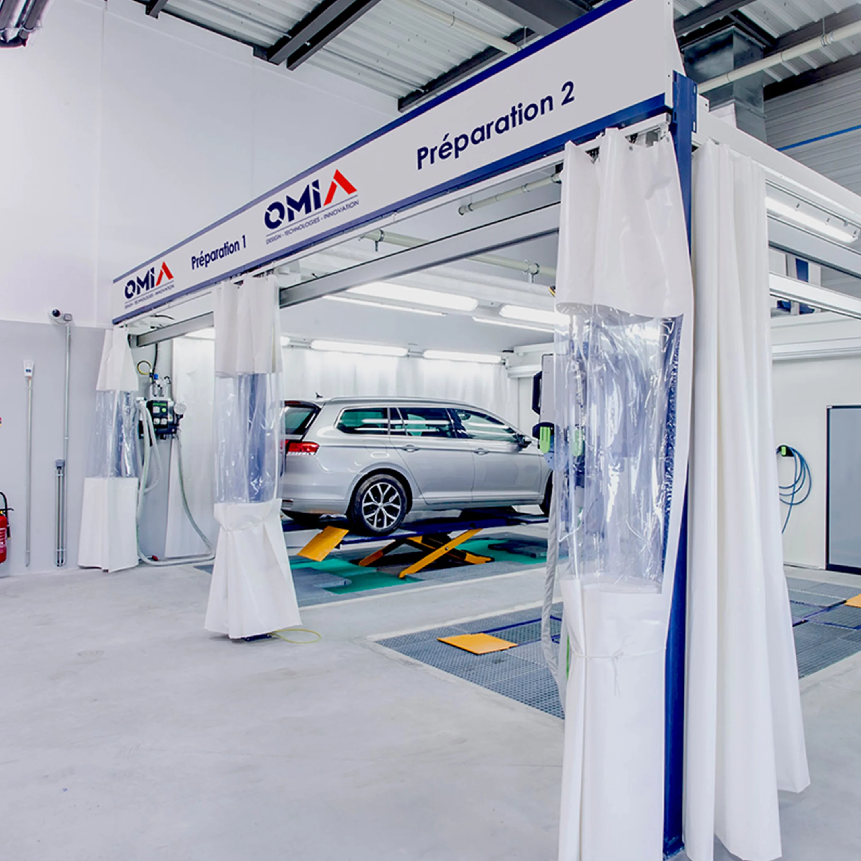 - Espace multifonctions simple ou double postes (avec ou sans compensation d'air chaud) pour opérations sur véhicule de : déshabillage, petite tôlerie, masticage, séchage, ponçage, dégraissage, marouflage, etc…